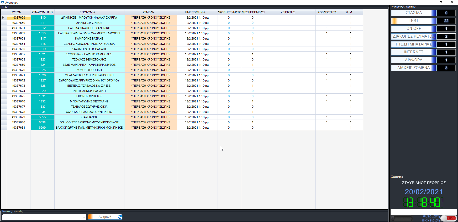 Η φόρμα χωρίζεται σε δύο μέρη όπου στο δεξί εμφανίζονται οι αναμονές των σημάτων