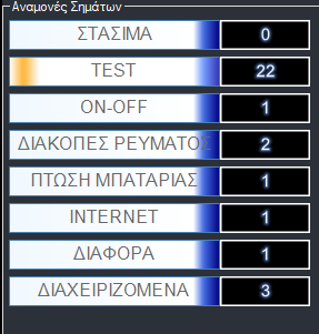 Όταν έχουμε σήματα συναγερμού τα οποία αναμένουν διαχείριση, τότε εμφανίζονται εικονίδια που αντιπροσωπεύουν το είδος των σημάτων.